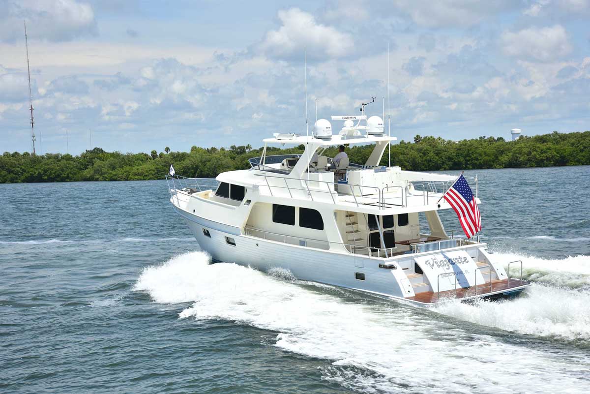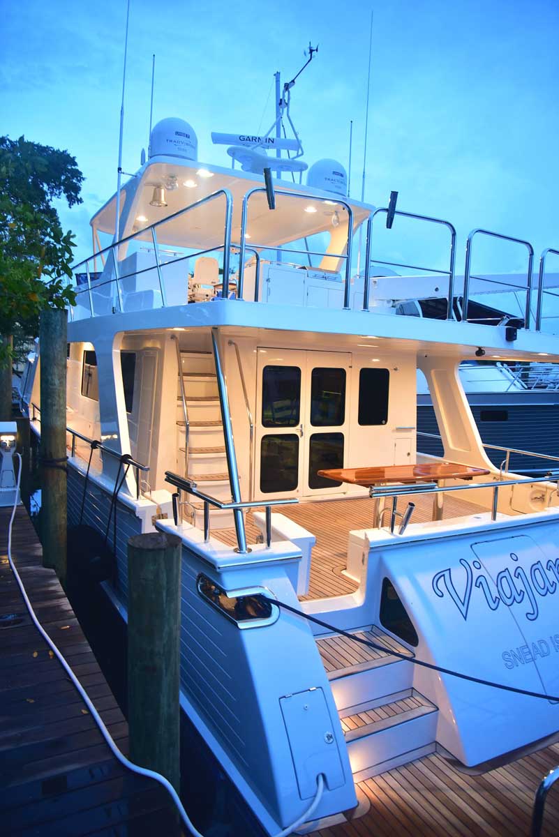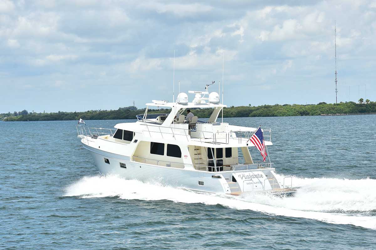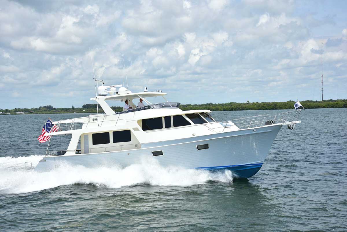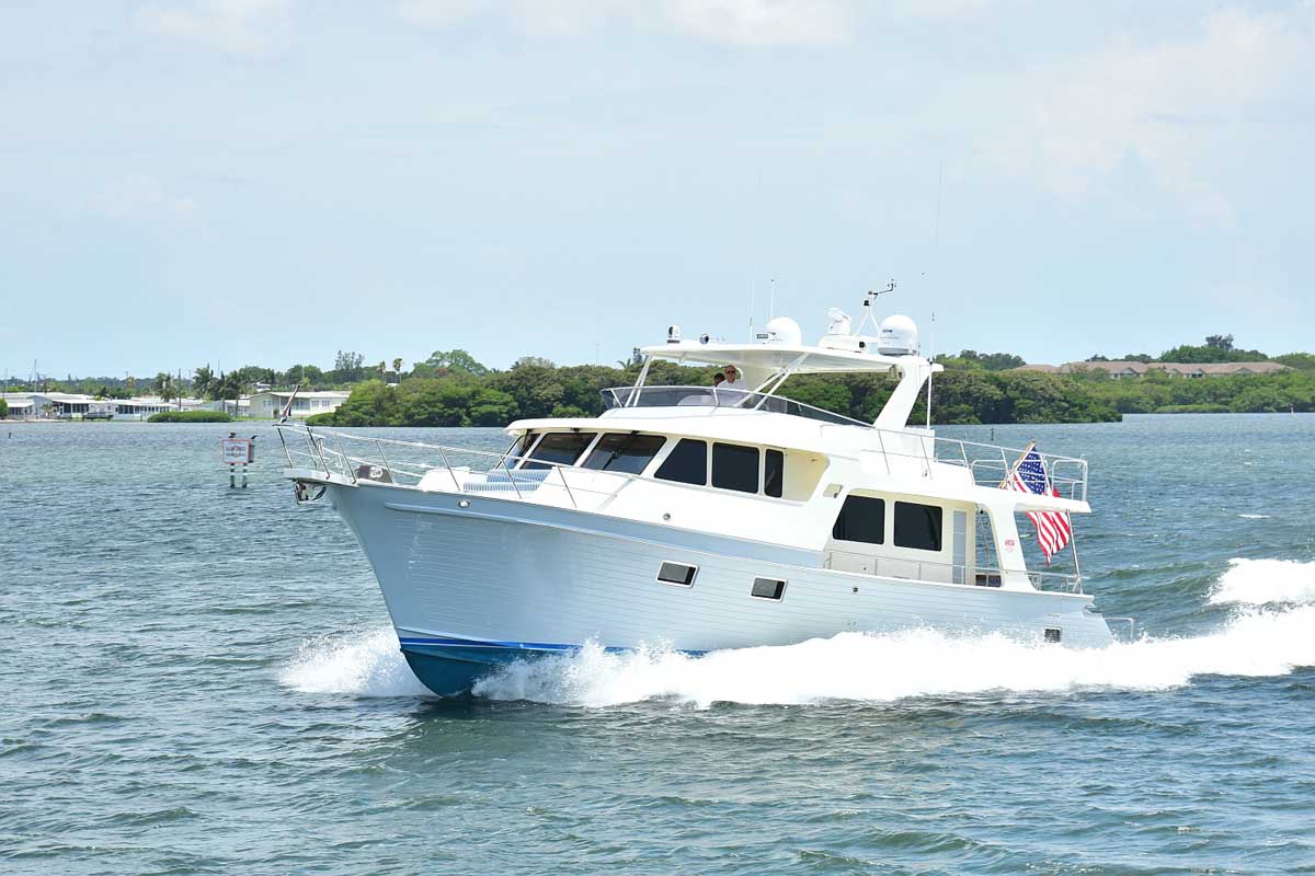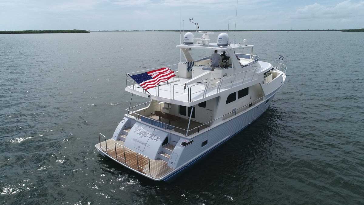 The introduction of the Marlow Explorer 53E in 2016 has brought a more fuel-efficient vessel due to the enhanced beam-to-length ratio and underwater design features significantly reducing parasitic drag. At the same time, interior and on-deck accommodation spaces are enhanced due to advances in composite and propulsion technology. Due to Marlow Yachts’ much acclaimed and awarded proprietary construction materials and techniques, the 53E boasts mechanical spaces equal to or larger than vessels ten feet longer. The effort of the Marlow engineers and designers makes it possible, in some layouts, to see the forward VIP while seated in the enclosed rudder room fully aft. This utterly unique flow-through traffic pattern is made possible by space-age engineering that eclipses all other products of similar dimensions.