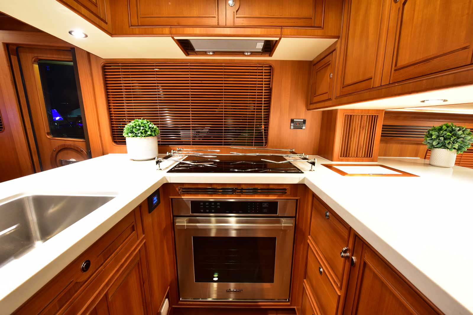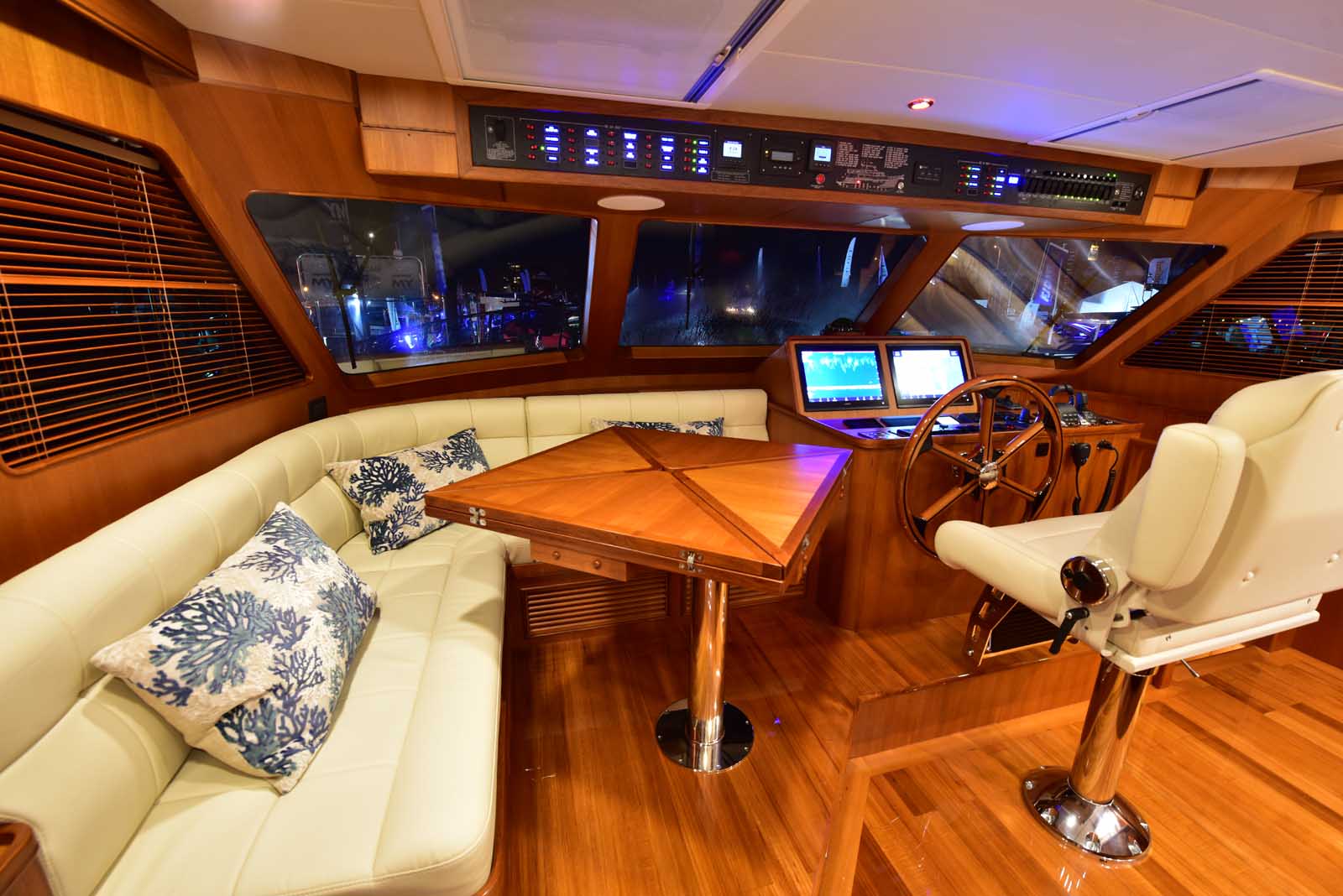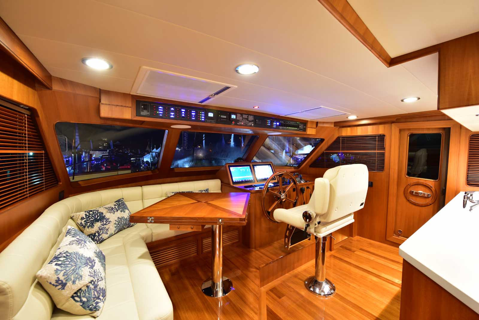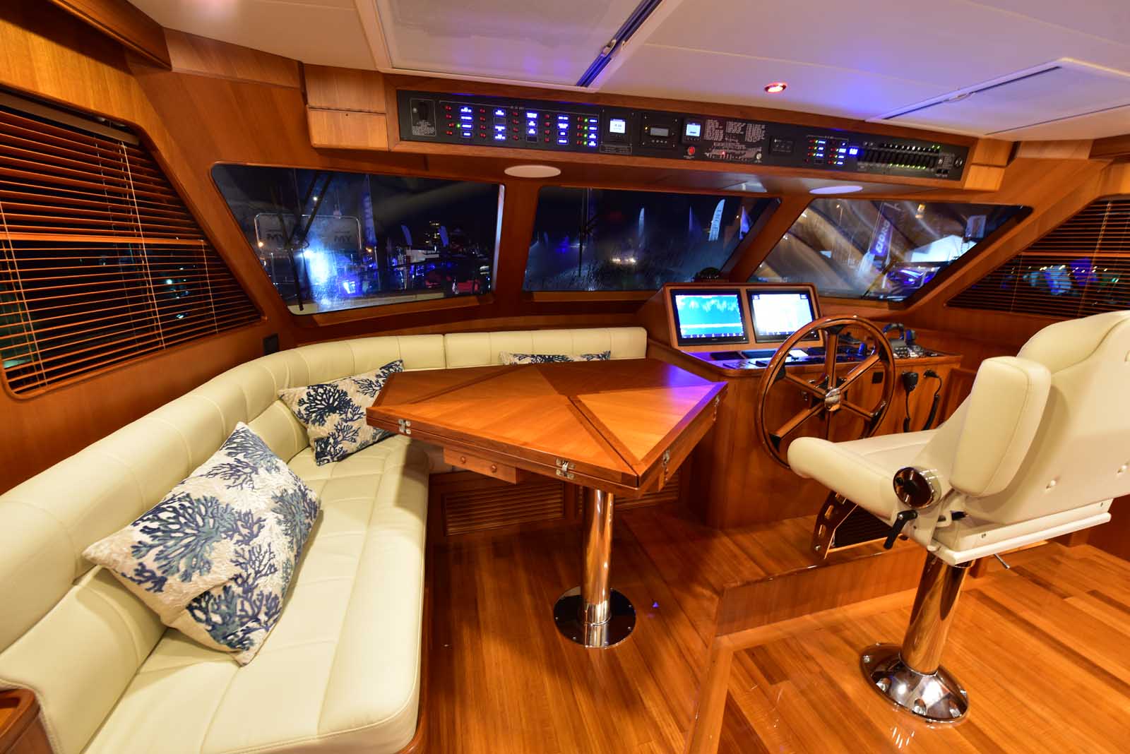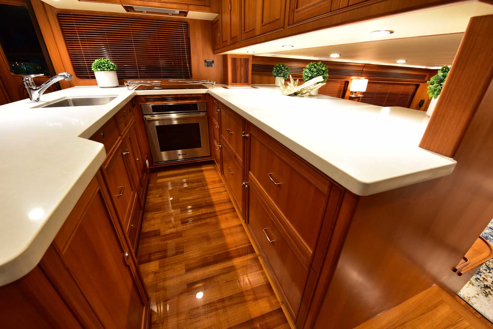 The layout below, in the first of this series, features two very large staterooms, each with its own luxurious head. The open companionway is bathed in light from overhead mirrored sunlight. The volume, comfort, and conveniences rival yachts ten feet longer, and the quality of the fit and finish of the joinery, woodworking, and fabrics are rival to none. The world-class quality found in this and all Marlow yachts compels, once again, our company motto – “Sometimes Words are Simply Inadequate.”