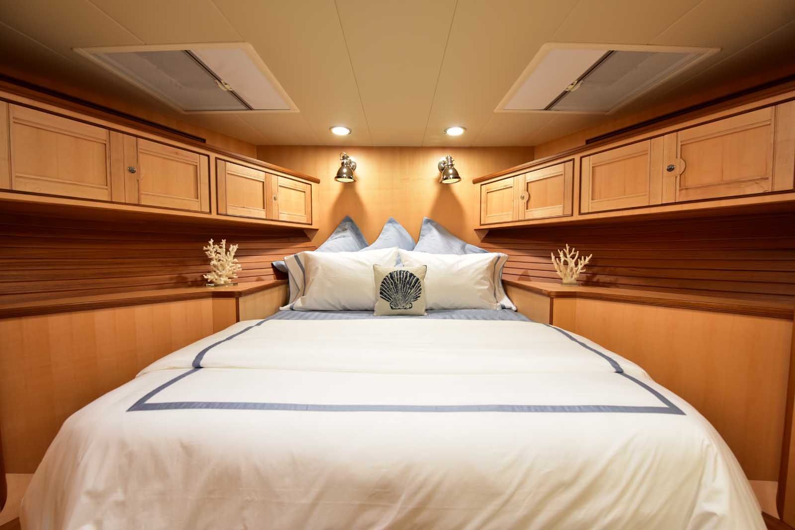 Introduced in 2013, the Marlow Explorer 62E was the first of a series whose innovations, quality, technology, seaworthiness, and voyaging capability set new standards for the industry at large. The 62E features a beam of 19’6″, approximately one foot beam greater than the ever-popular Marlow Explorer 61E, making every area of the vessel, both interior and exterior, larger. She has an additional 750+ gallons in fuel capacity and draws 4″ less water due to the innovative design of engine placement and reduced shaft angle, which have increased speed by 5% and fuel economy by approximately 10%, increasing her already industry-leading performance and range. Simply put, no other similar yacht approaches these standards.