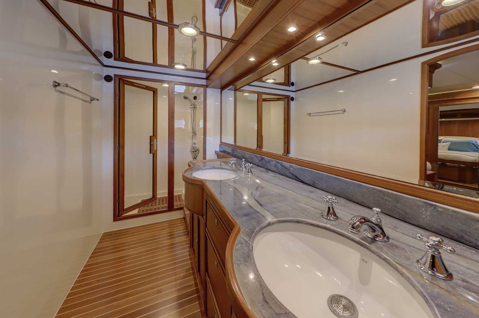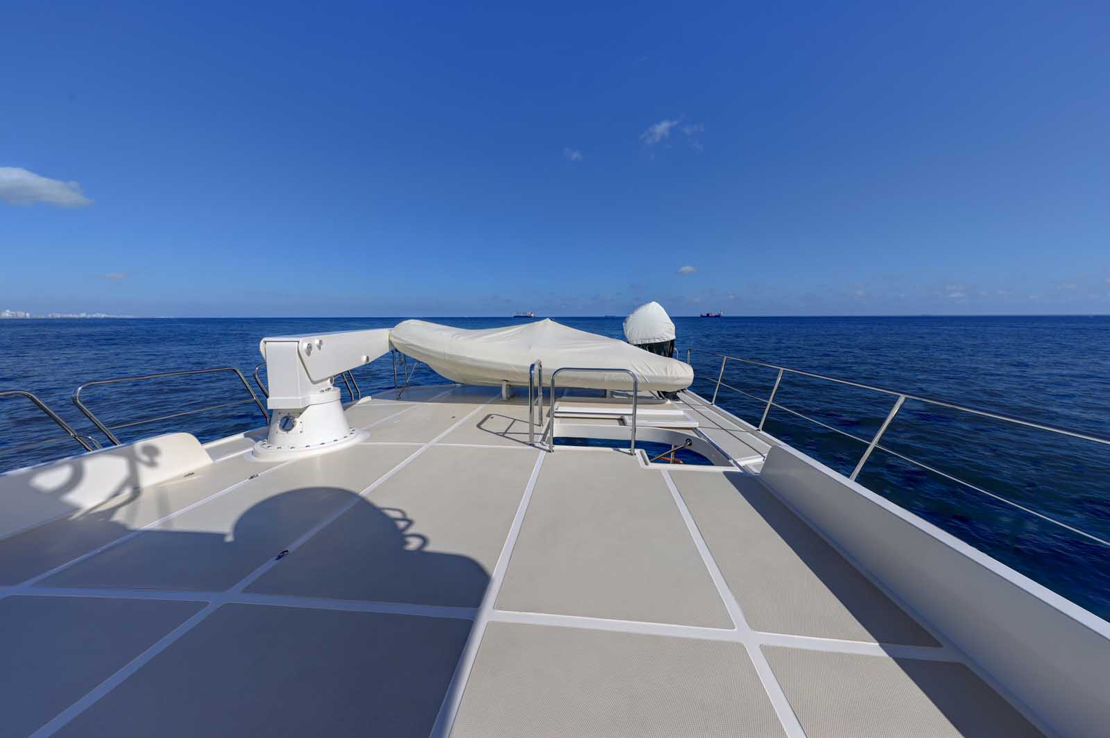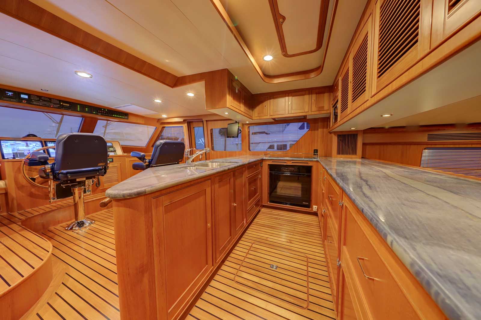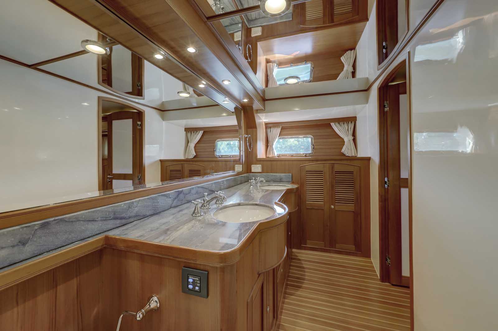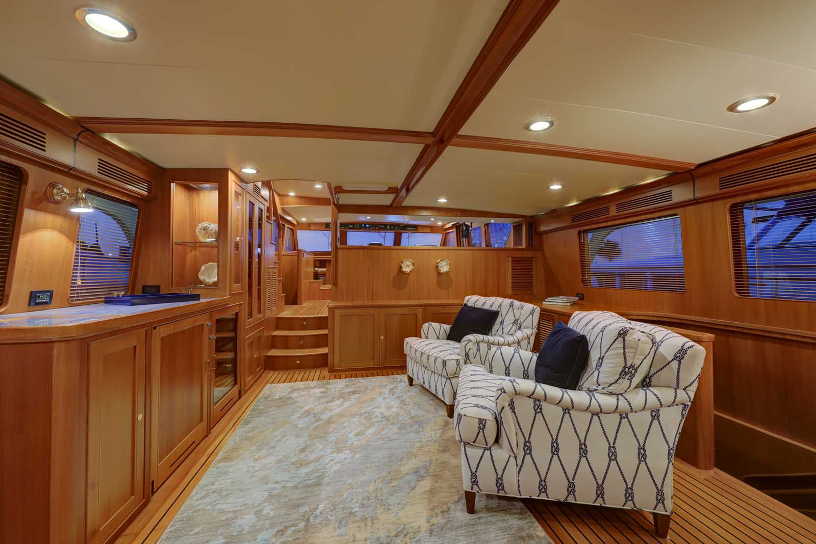 This yacht delivers speeds in the 30-knot range, exceeding the speeds of sport fishermen of similar size despite having 20% smaller engines. This lofty goal is made possible by extensive testing and research on the 80’+ Marlows and continuing development work on overall drag reduction.